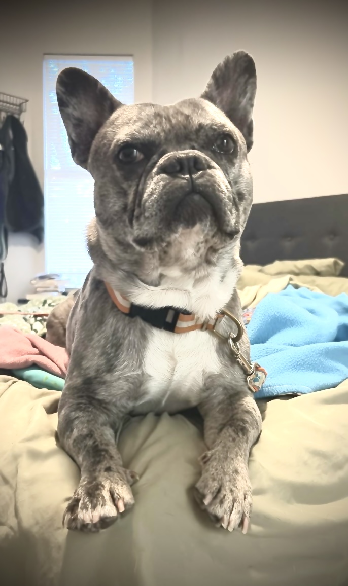 Blue is all fun, head-tilting, leaping Frenchie once he's had a chance to settle in, but thanks to his 💩 💩 past, he DOES need TIME to trust that he is not going to be hurt or frightened again.