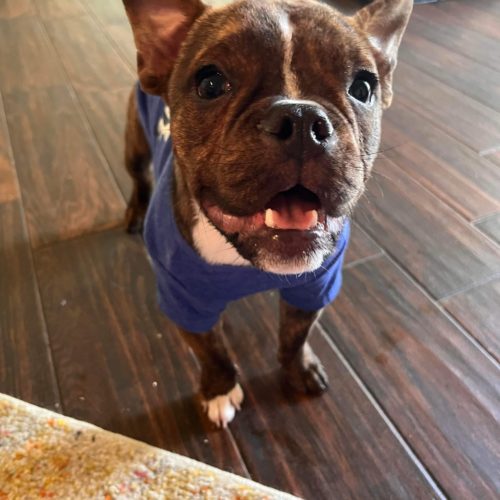 Creature looks a little bit different than other Frenchie puppies, but we love that about him. He was also born with a cleft palate, and ABR will be sponsoring his surgery to help close this when he’s old enough, hence why he is only available for local Austin area adoption (his surgery will be in Round Rock or South Austin)