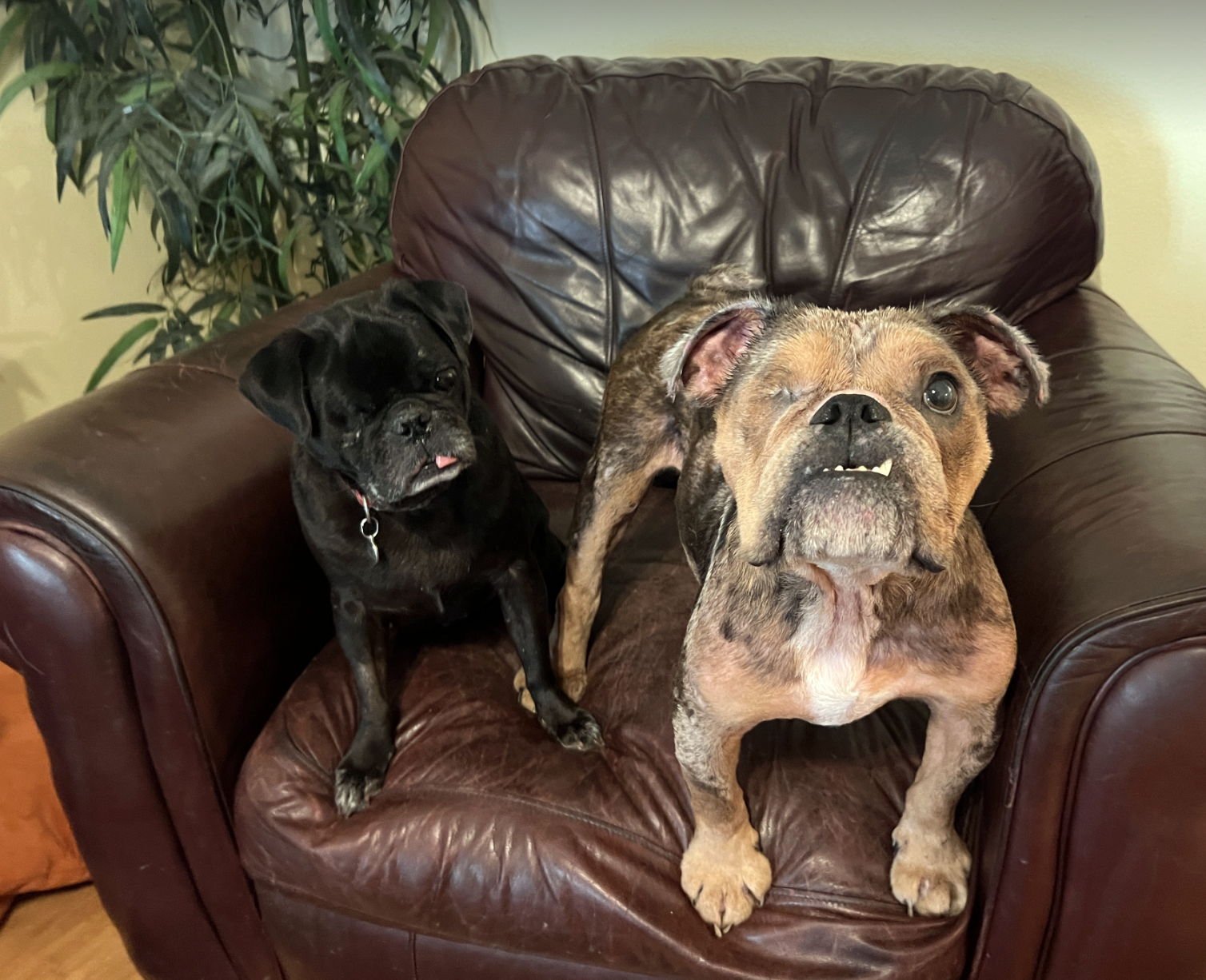 She is fearless, cuddly, and LOVES her doggy siblings.