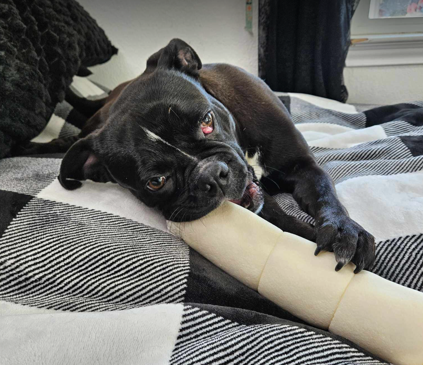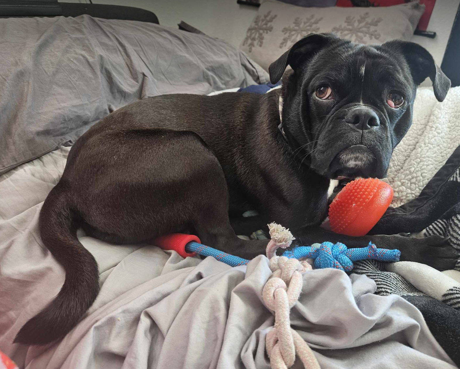 We can already tell that he is a delicious little Frug (ok, we might have made that up, but what else would you call frenchie/pug mix...?) and is just so lovely, gentle, and fun.