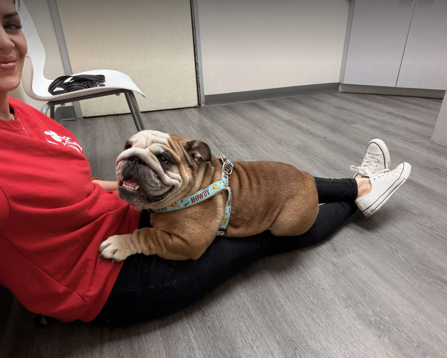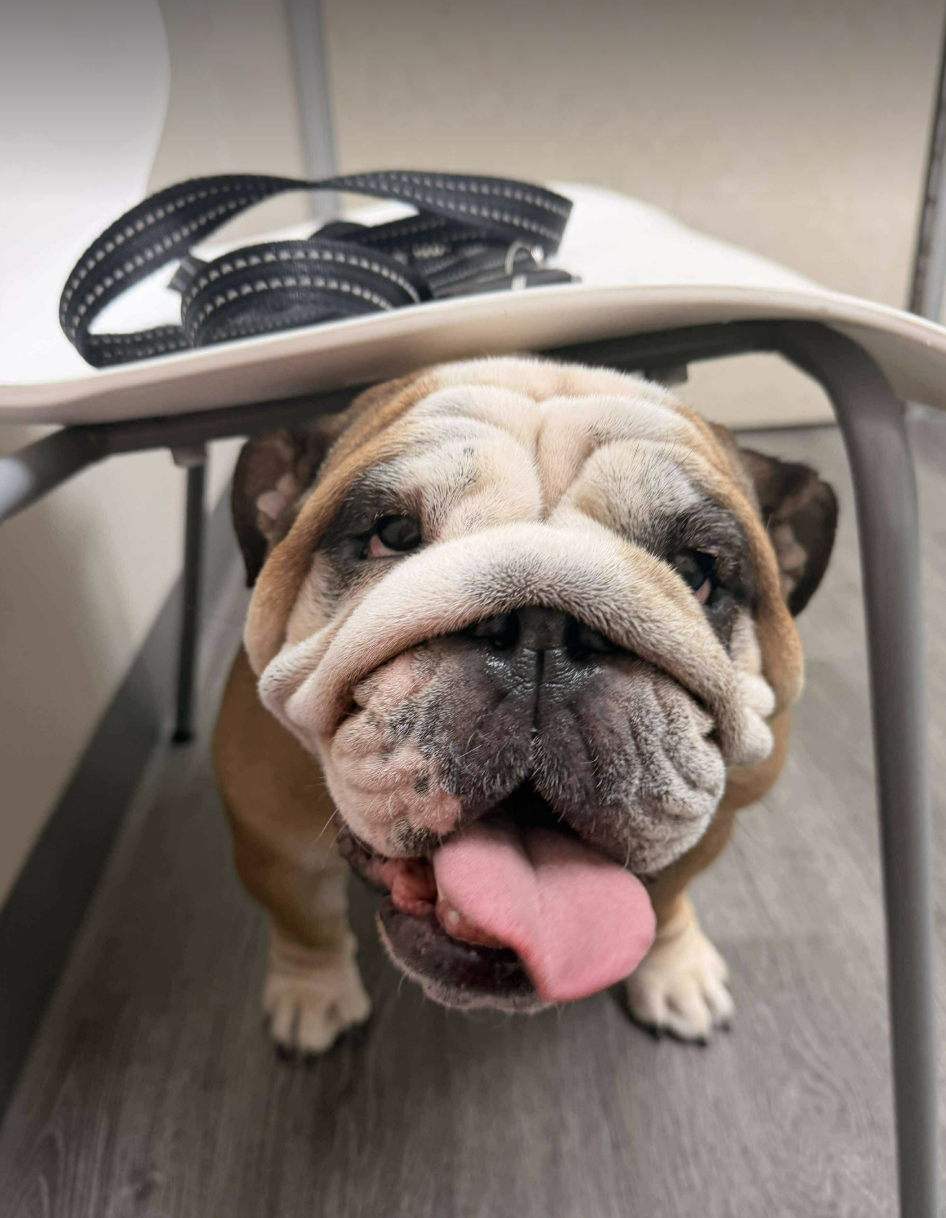 We would LOVE for this little girl to go to a home with at least one other friendly, chill doggo, and, because she is extra squatty with just so many rolls, she will need ot go to a home without stairs for her to manage.