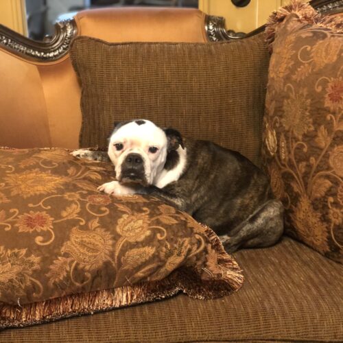 Miss Lemon was a street dog that we started to see when we moved to the San Antonio area in July 2021. We would spot her on our security cameras and wonder who that cute dog was. On occasion we would spot her lying underneath trucks in the summer and see her walking around but these sightings were sporadic. After not seeing Miss Lemon for almost a year we were beginning to think the worse, then one day in September we spotted Miss Lemon lying under a car. Her belly was swinging and we thought that she might be pregnant. At this point we already knew we needed to rescue her from the streets, but with the possibility of puppies it became more urgent. We took her into our home on September 18th 2023 and she has been with us ever since.