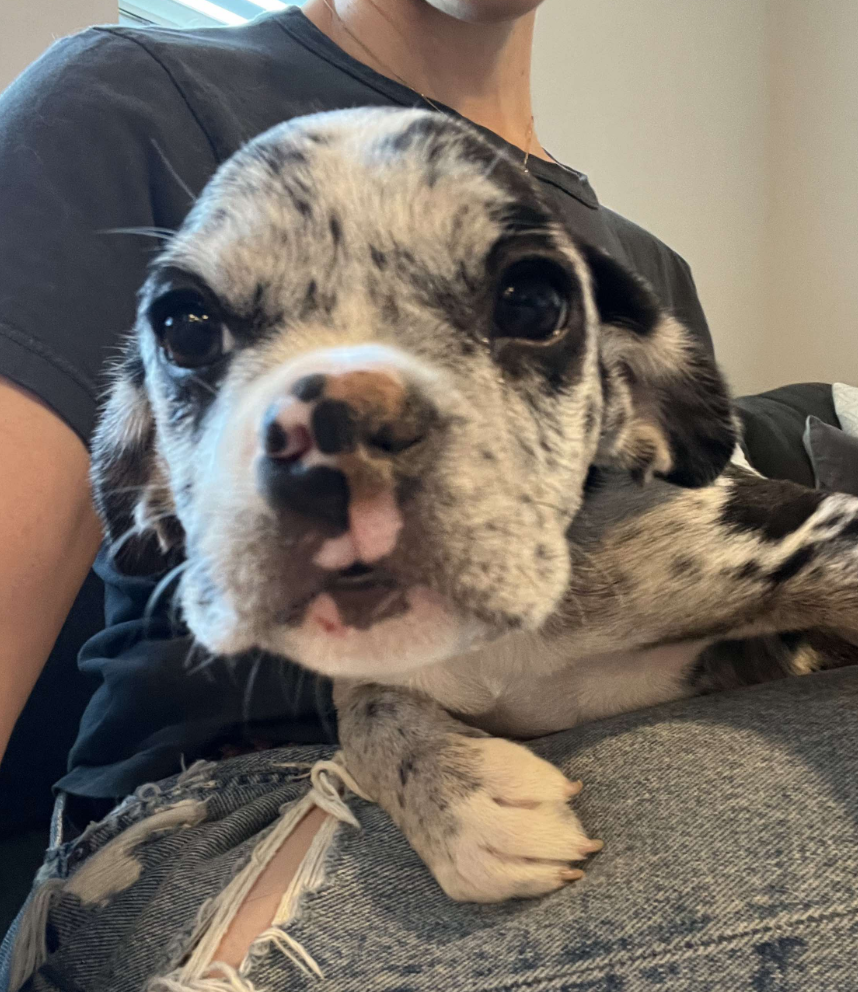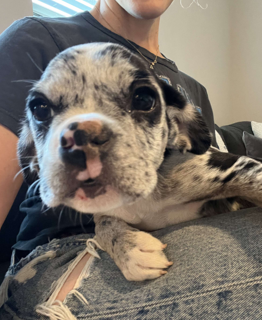 An adorable bulldog mixed with a floppy cocker spaniel, swoon!