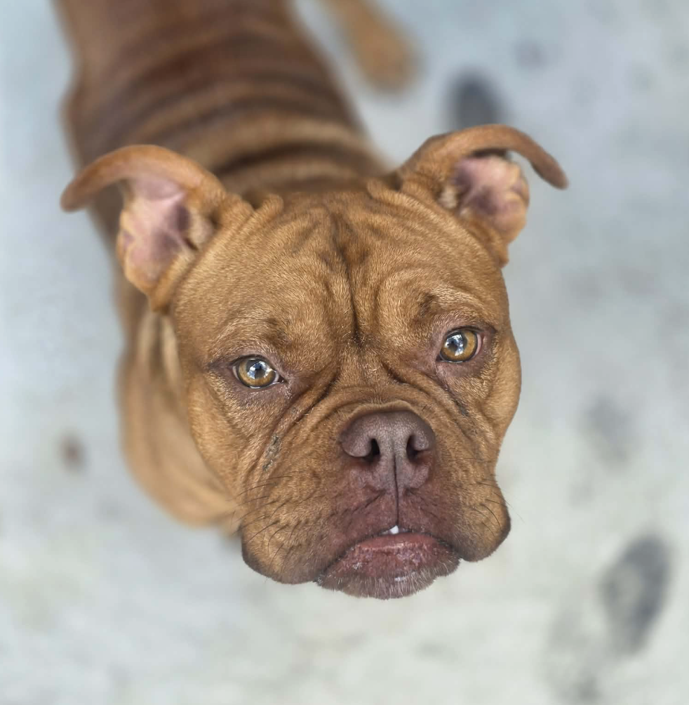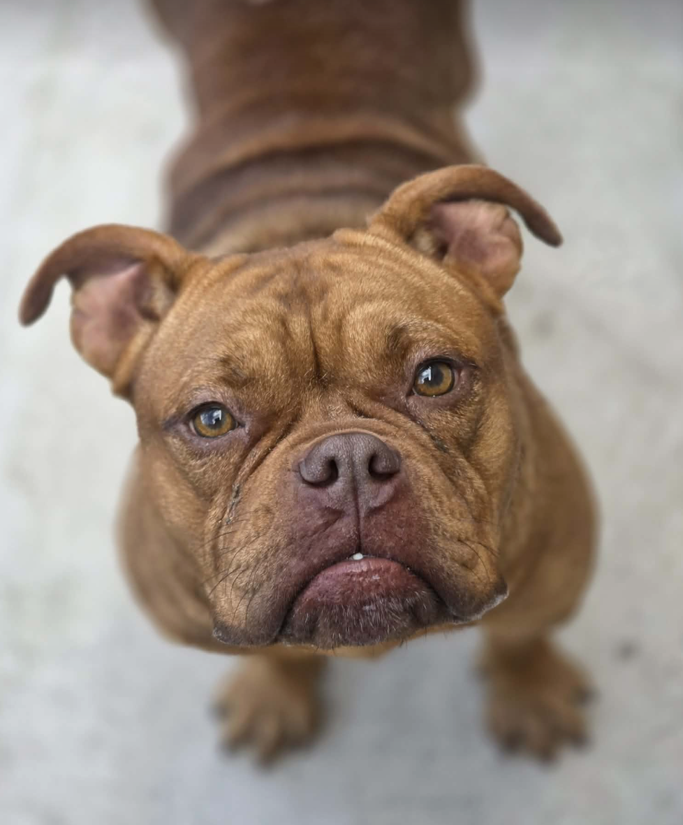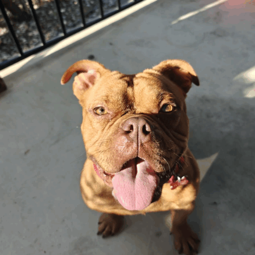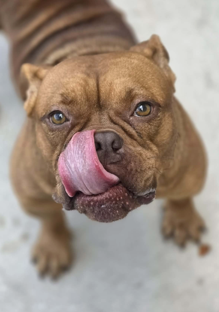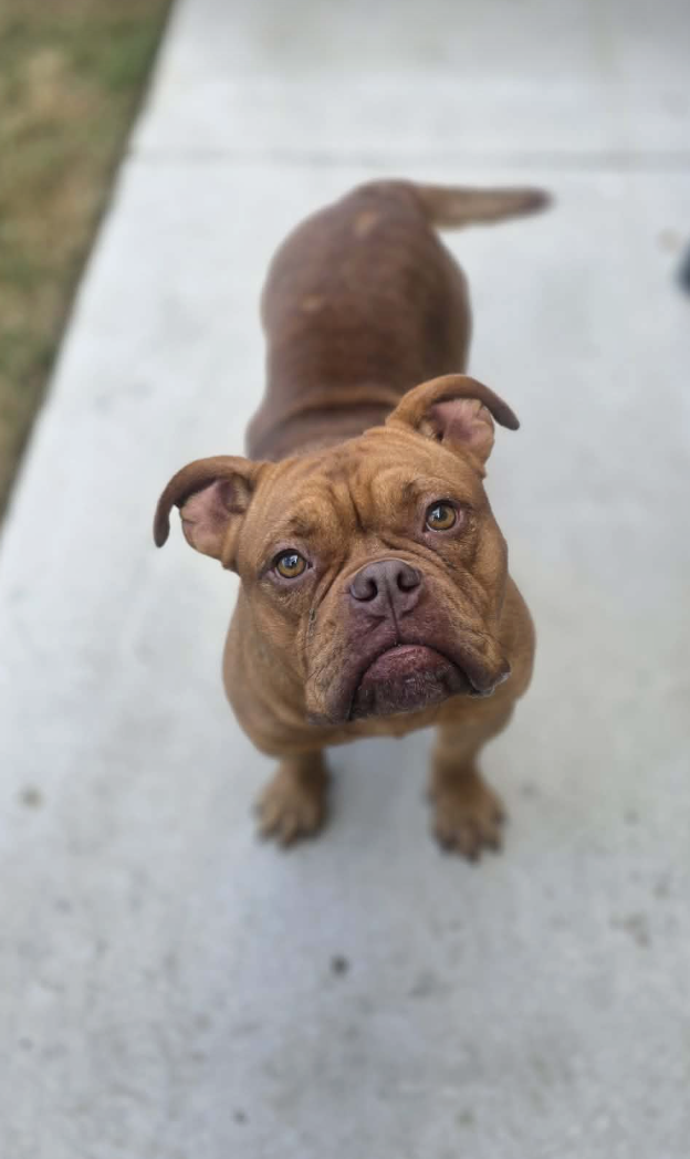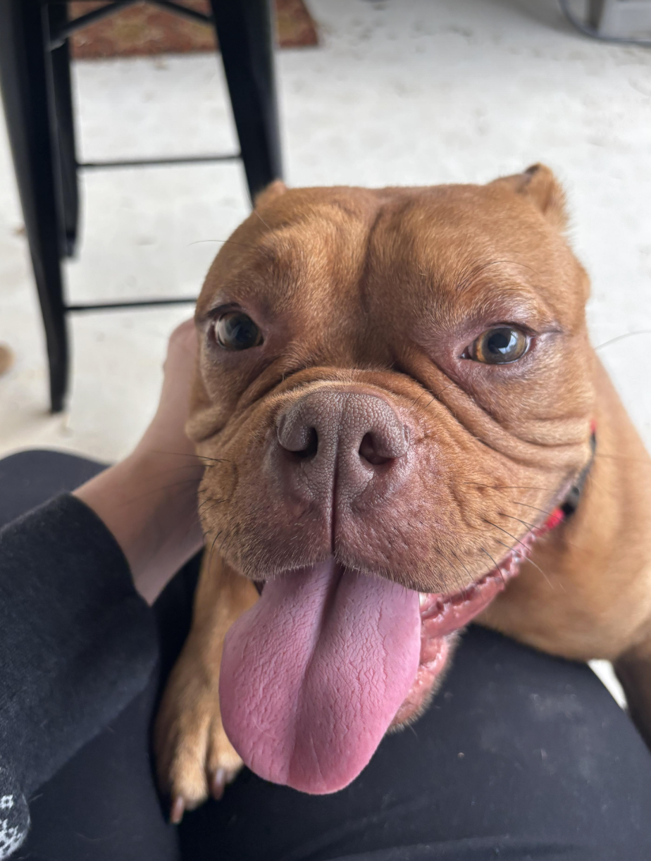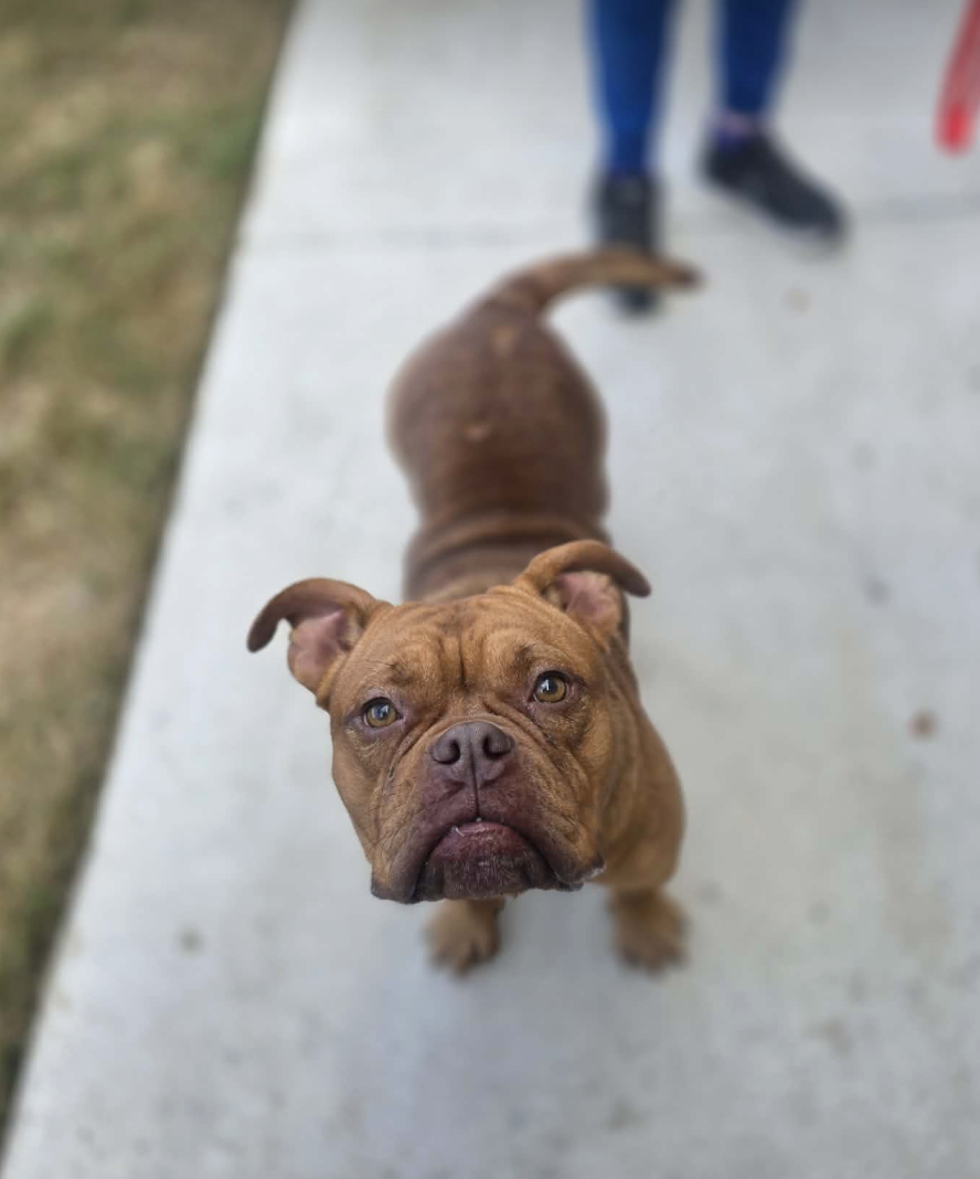 Still pretty new to his new life, but already a bona fide lover boi who we know is ALL bulldog when his foster mama describes him like this: "He currently doesn’t have a good grasp on boundaries. He thinks everyone should be greeted by him climbing into their lap."