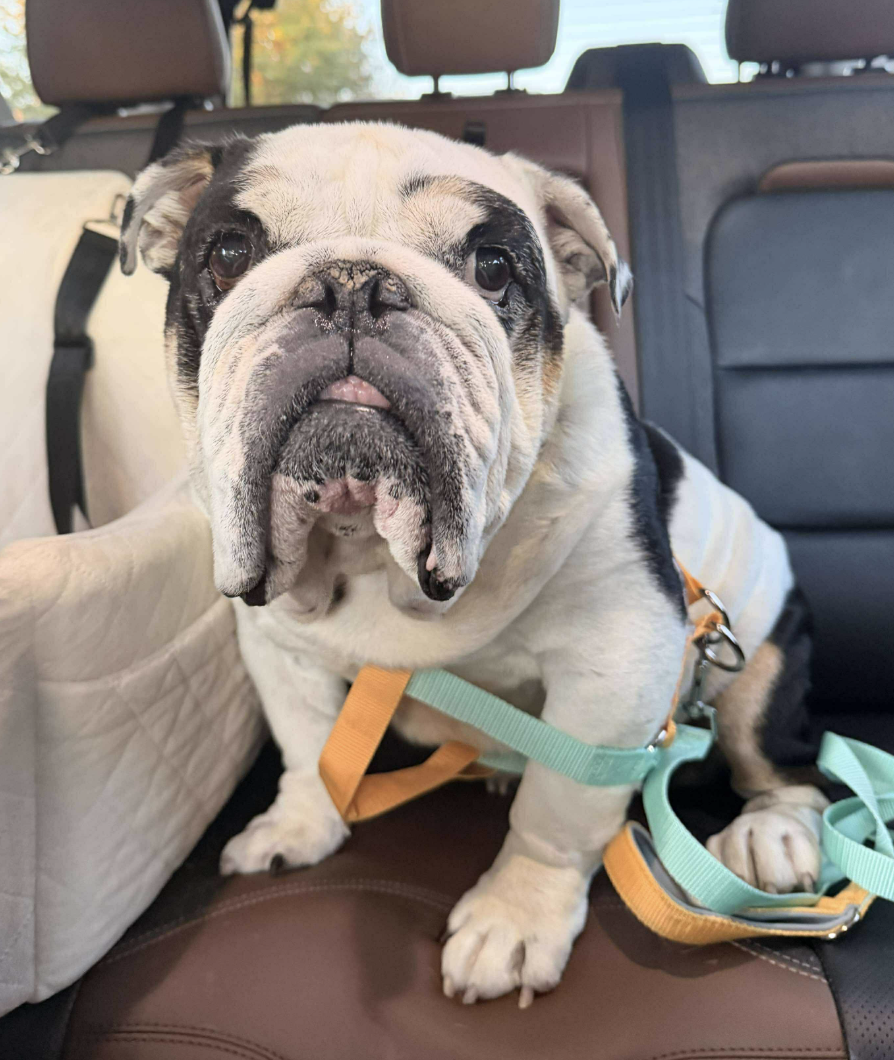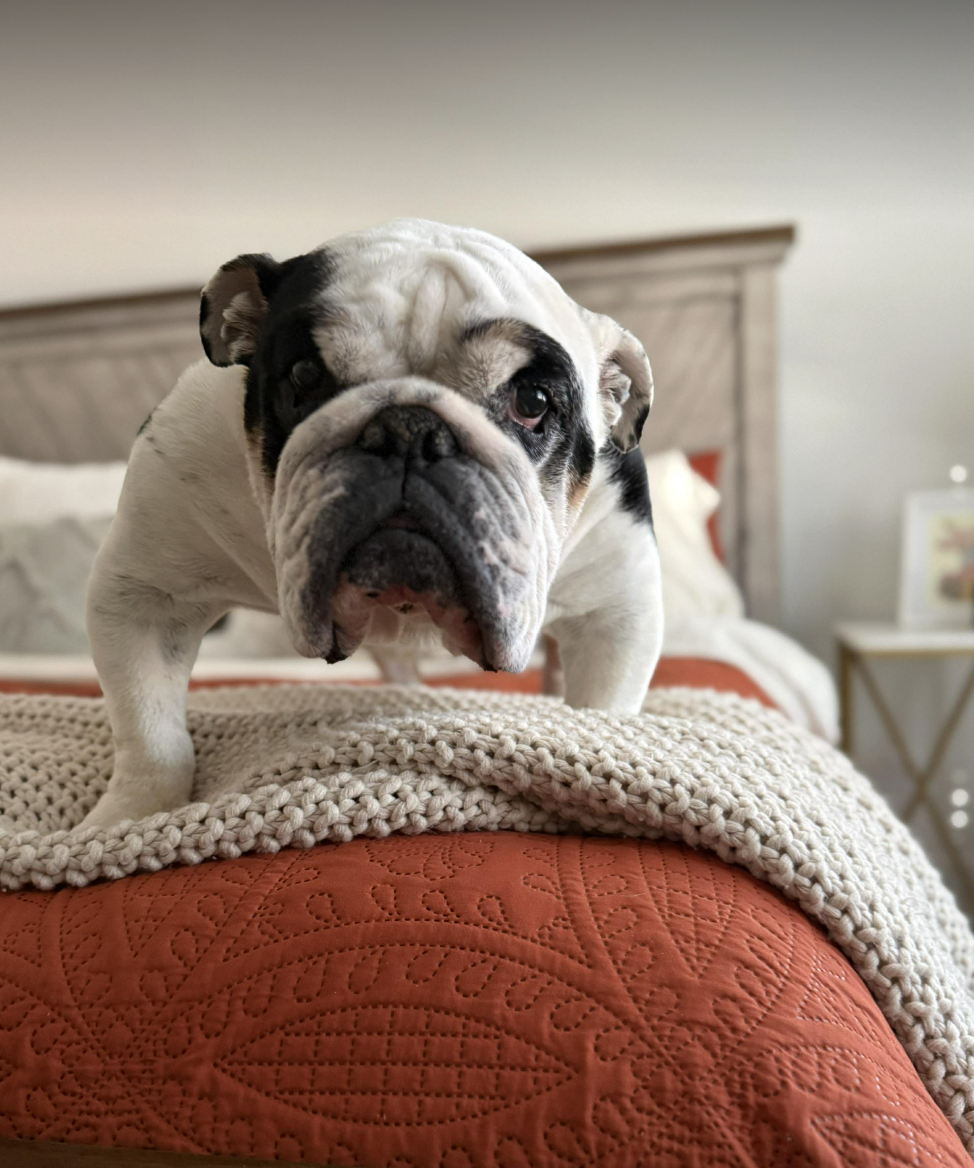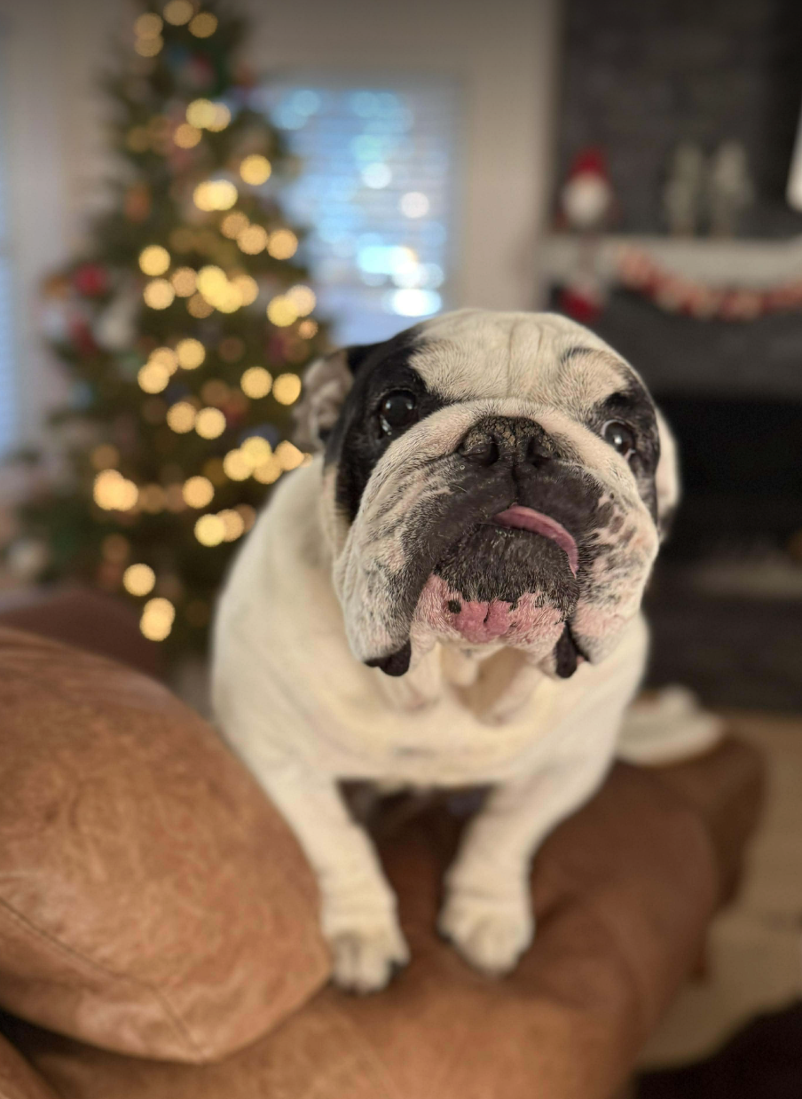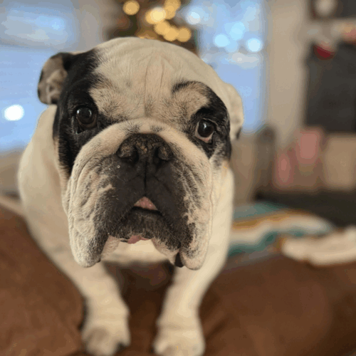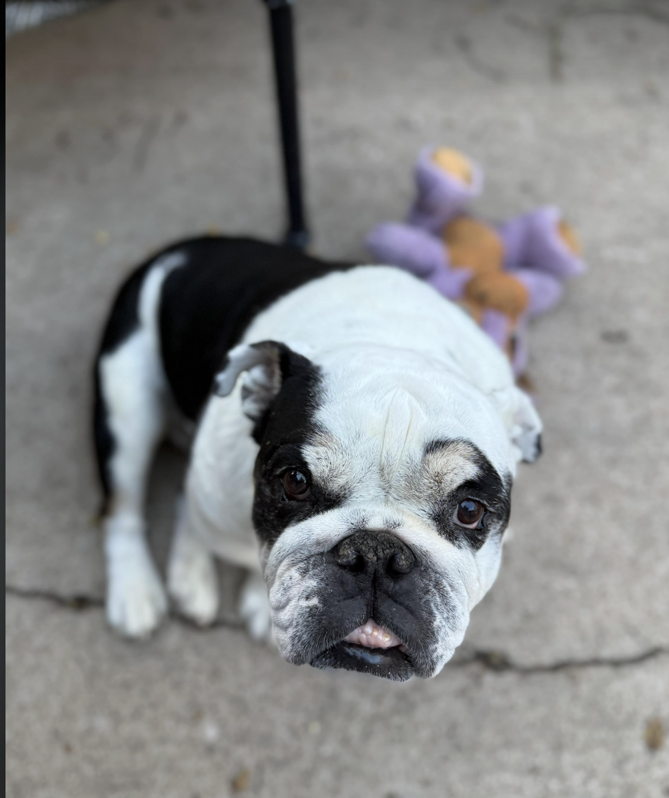 That's our Tuxie, a big, smooshy, floopy BULLDOG.