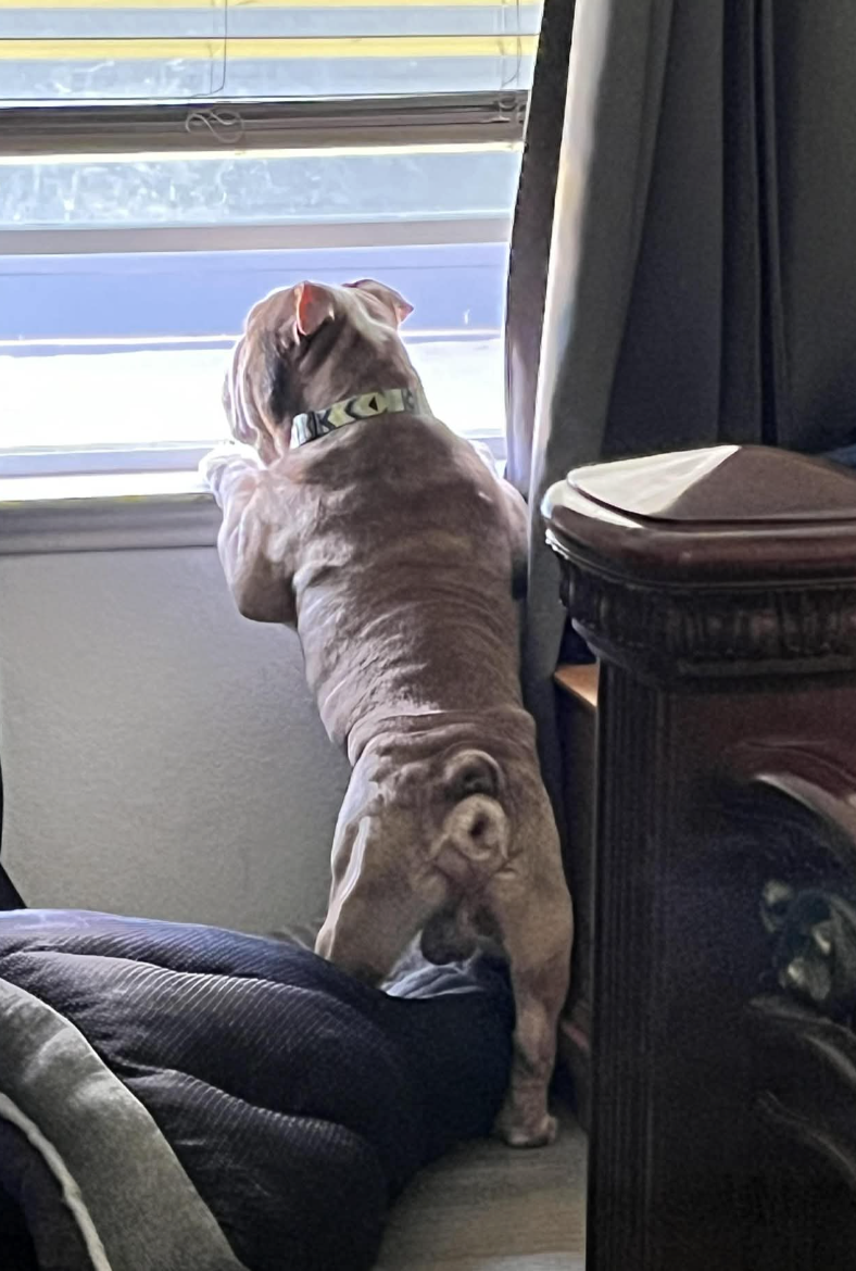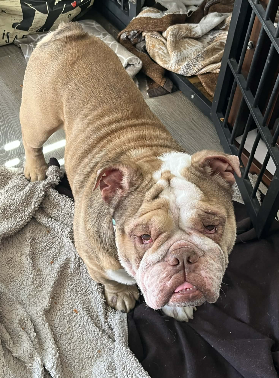 He's a typical bowling ball bulldog who loves, loves, loves to be a part of a family and would LOVE to have a pack of people and potentially pets to call his own, oh, and to be home for the holidays 🎄