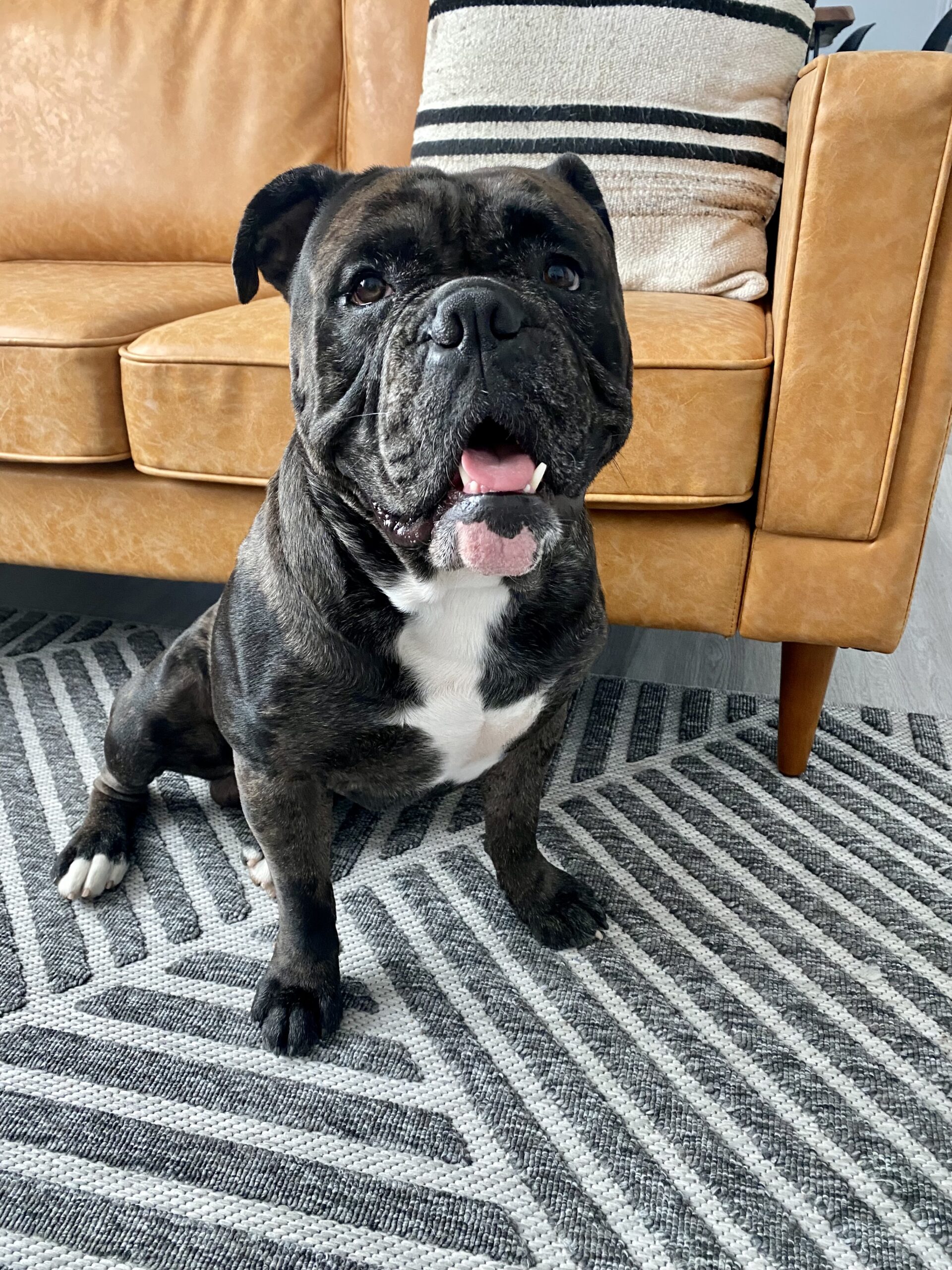 Vinny is absolutely a Velcro dog and wants to be by your side at all times. He is protective of his home and very vocal but has never shown any actual aggression. He is wary of strangers but once he knows you, he loves you unconditionally. His ideal home would be one where is he walked daily, gets lots of love & snuggles. He has lived in a home with small children up to teenagers and loves everyone but does not understand his size. He would love a playmate that is close in size because again, he is rough and likes to run and wrestle. He is housebroken but will mark outside and needs to be redirected if there are specific areas you do not want him to go but he has never had an accident inside. He is an indoor dog.