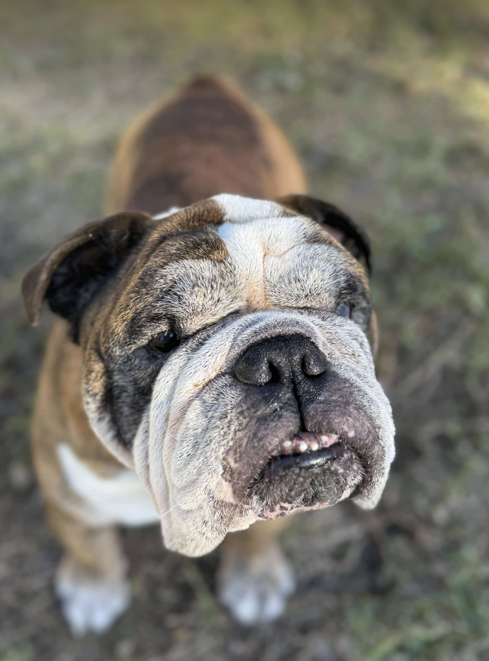 Willis is about the most delicious, squashed, bully bowling ball we've welcomed in a while.